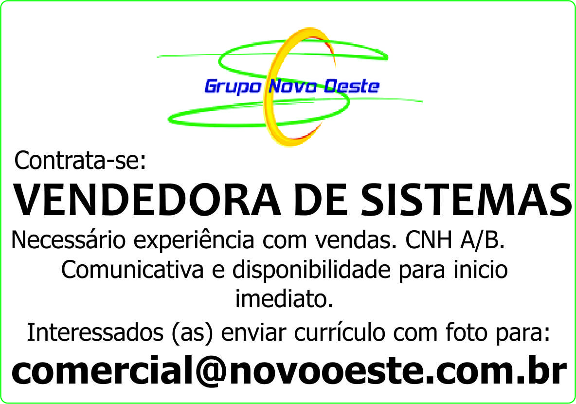 Ao encaminhar o currículo, no anúncio identifique a vaga: Vendedora de Sistemas. Enviar currículo: