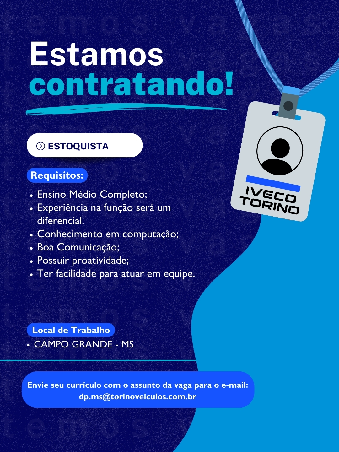 - Experiência na funlão será um diferencial;