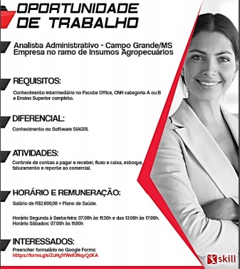 Vaga de Analista Administrativo, para Campo Grande/MS.