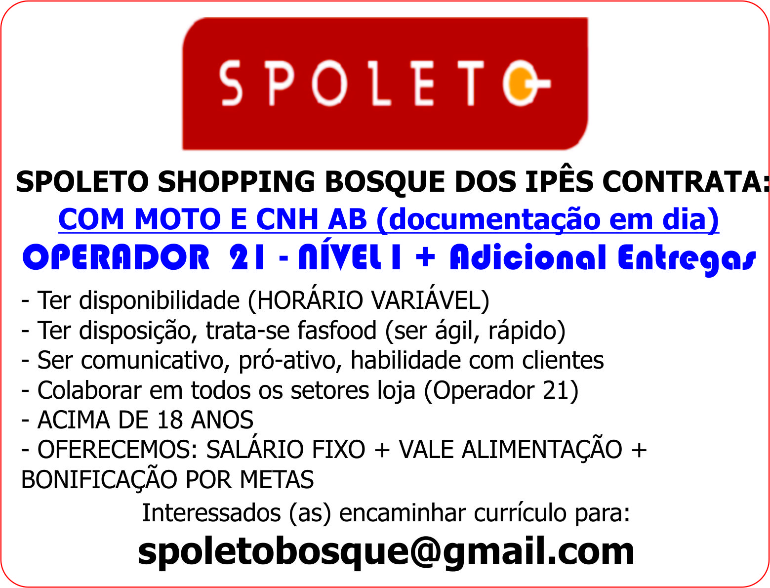 - Ter disponibilidade (HORÁRIO VARIÁVEL)