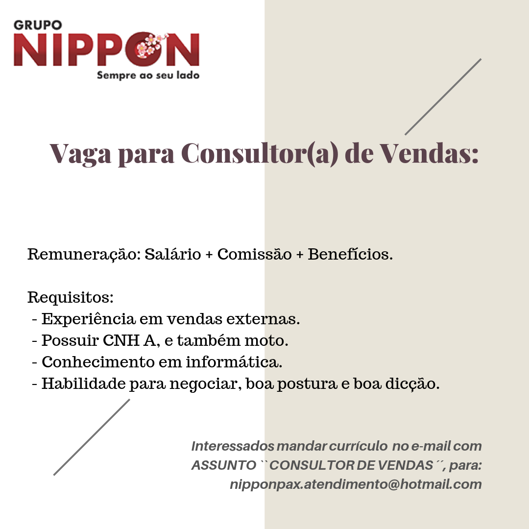 No assunto escrever: CONSULTOR DE VENDAS