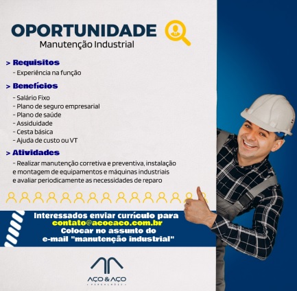 ATIVIDADES: Manutenção corretiva e preventiva, instalação e montagem de equipamentos e máquinas industriais e avalia periodicamente as necessidades de reparos.