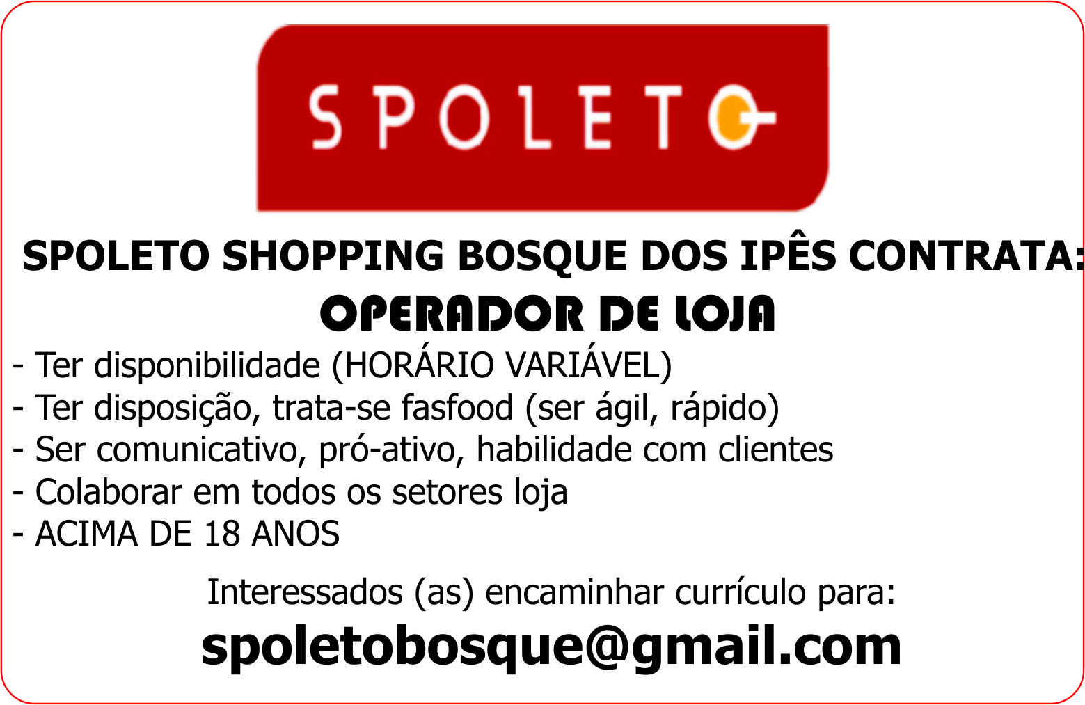 Interessados (as) encaminhar currículo para: [email protected]