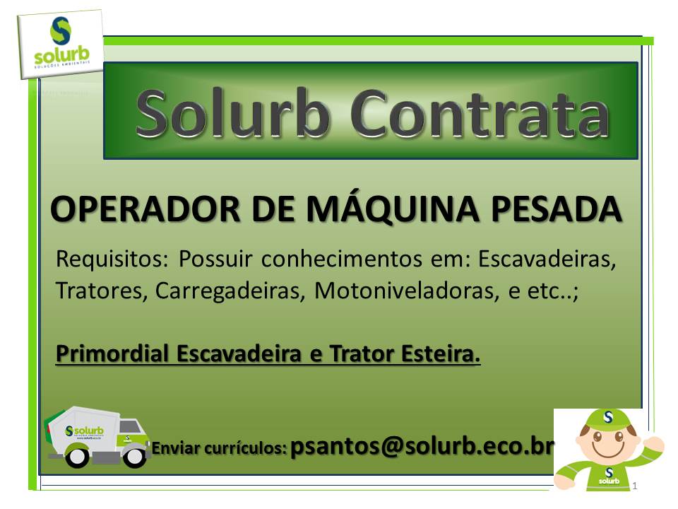 Requisitos: Possuir conhecimentos em: Escavadeiras, Tratores, Carregadeiras, Motoniveladoras, e etc..;